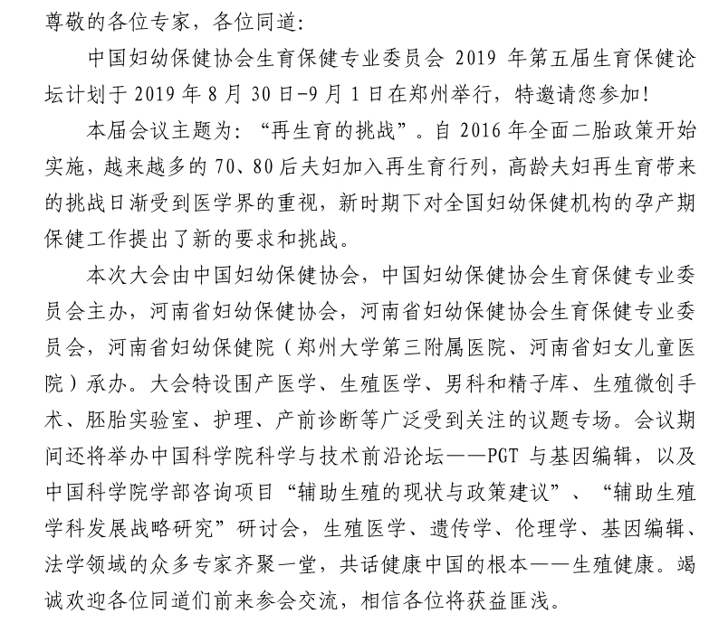当前位置: 会议预告 / 中国妇幼保健协会生育保健专业委员会 2019年第五届生育保健论坛 第二轮会议通知
